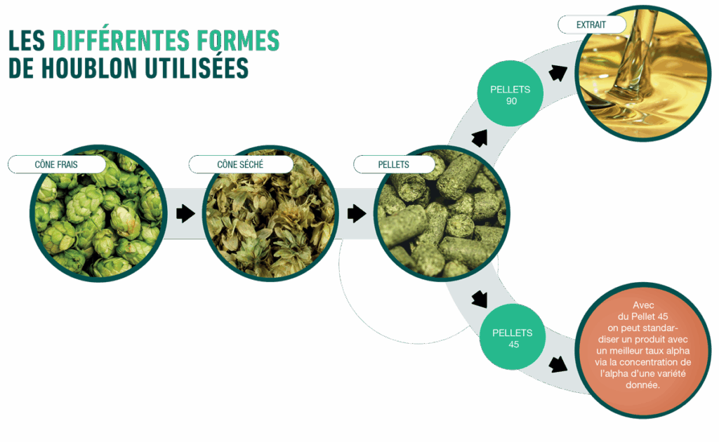 En fonction de la recette du brasseur et de son processus de houblonnage il va être amené à utiliser une forme de houblon plutôt qu’une autre.